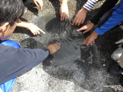 奥日光「湯元」では、源泉に触れました。硫黄のにおいに温泉を感じました。