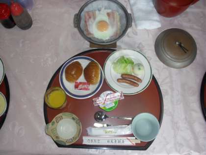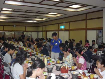 3日目の朝は、気温22、3度とさわやかです。朝会終了後、朝食をとりました。