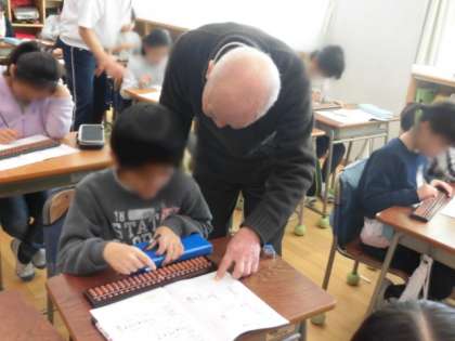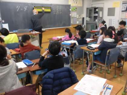 13日(月)、14(火)、16(木)の3日間、東京珠算教育連盟の高橋徹先生が、3年生の子どもたちにそろばんを教えてくださいました。
