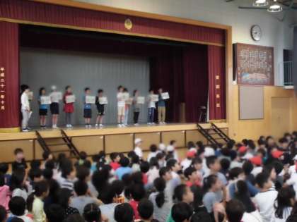 説明後、その委員会に所属する5・6年生が立ち上がり、全校の児童に紹介されます。