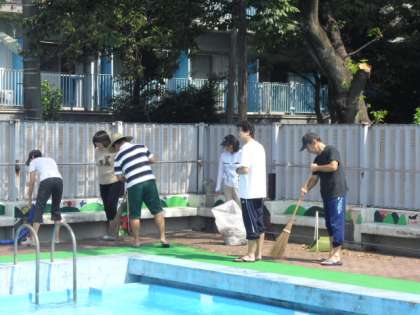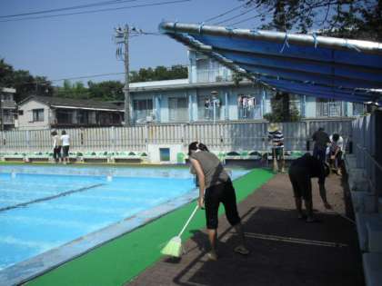 今日は「処暑」ですが、まだまだ猛暑の夏です。明日からの後期の夏季水泳教室に備えてプール掃除をしました。先生方は、暑い中汗を流しながら子どもたちが気持ちよく水泳ができるように一生懸命です。先生方ありがとうございます。