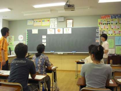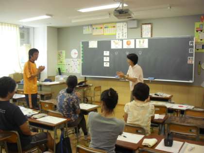 午後は、先生方の研修会です。先生役と子ども役に分かれて英語の授業を行います。