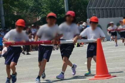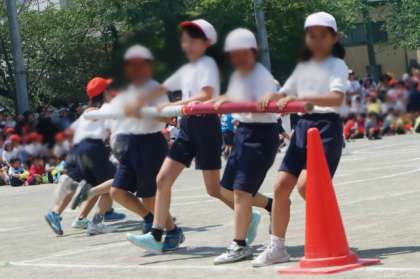 4年生の団体競技は、4人の気持ちが一つになることがポイントです。