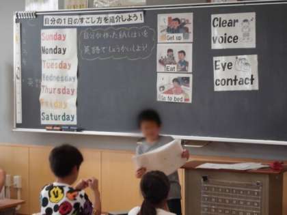 紙芝居を使って、自分の1日の過ごし方を英語で紹介しました。