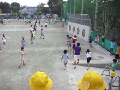 元気に外で遊ぶことで子どもたちの体力も向上します。もちろん教室に入るときにはお水を飲んでいます。