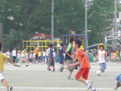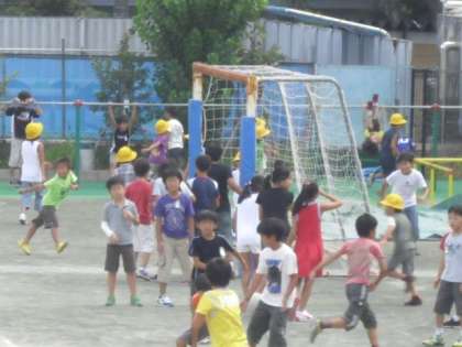 外は暑い!ですが、休み時間になると校庭中を子どもたちが走り回っています。