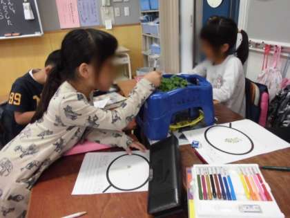 茎や葉の色、においや手触りなど、多くの気づきを観察カードに記録しました。