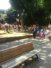 駒沢公園へ到着しました。手をつなぎなから、2年生が話すきっかけをつくり、あとは、1年生の話を聞いてあげるバディーの光景を多く目にしました。