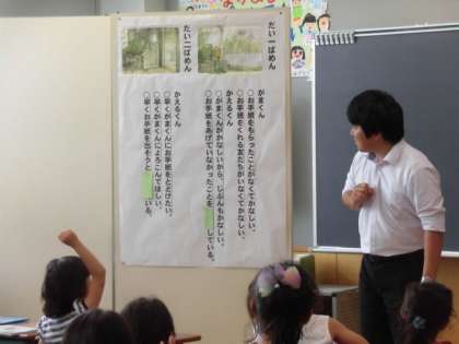 今年度の研究は国語を進めていきます。第一回目は二年生の「お手紙」での授業でした。