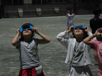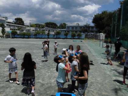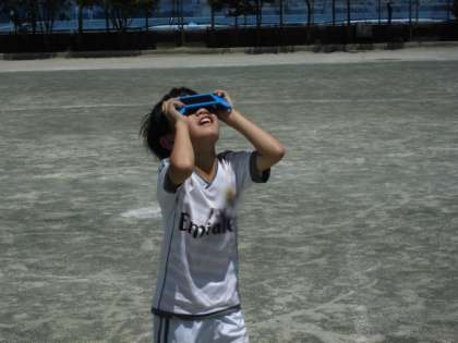 学習活動の後半では、遮光板を使って太陽を観察しました。
