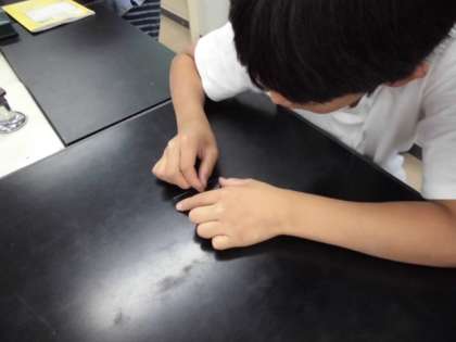 5年生の理科は、インゲンマメのでんぷんを観察しました。
