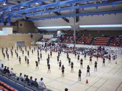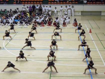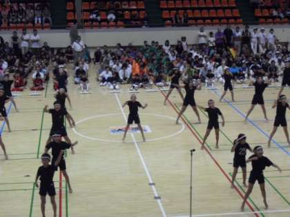 世田谷区民体育大会開会式のオープニングセレモニーに、5年生の有志で「HIGASIソーラン2010」を踊りました。朝早くから子どもたちそして保護者の皆様に総合体育館まで足を運んでいただきありがとうございました。校庭で踊るのと違い、スタンドにいる人も見え、いつもより緊張したようです。保護者の方々も子どもたちの踊りがよく見えたようです。大舞台で立派に踊った子どもたちに、会場から大きな拍手をもらいとても嬉しかったです。スポーツ振興財団の理事長さんから「区長さんも感激していました。」という言葉をきいてますます嬉しくなりました。楽しいひと時でした。