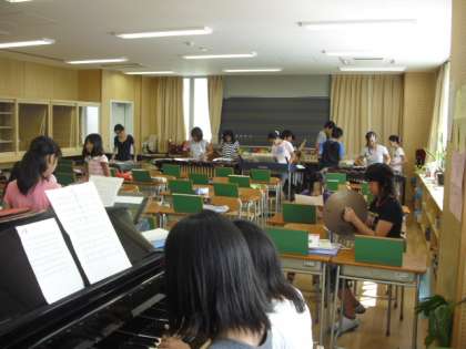 6年生の学習です。1組は音楽、2組は家庭科、3組は図工の学習です。2学期も落ち着いて学習をしています。