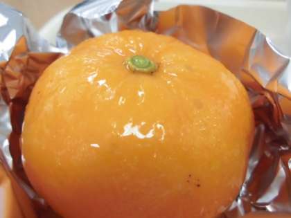 冷凍みかんは、蛍光灯が反射して美しいですね。成功です。