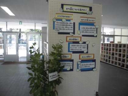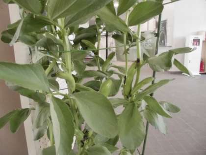 今年も八百屋さんのご好意で、昇降口にソラマメを展示しています。