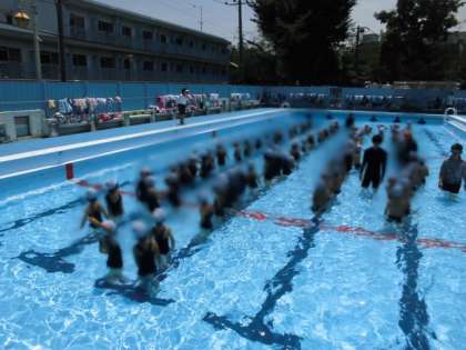 大きなプールに目を輝かせ、冷たい水の中に入ると自然と笑顔になっている様子が印象的でした。