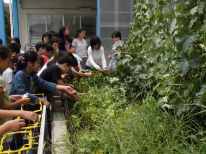 グリーンカーテンの裏側に回り込み、一瞬のすきを狙って撮りました。