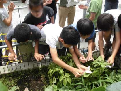 ジャガイモの葉を使って、でんぷんができる仕組みを調べます。