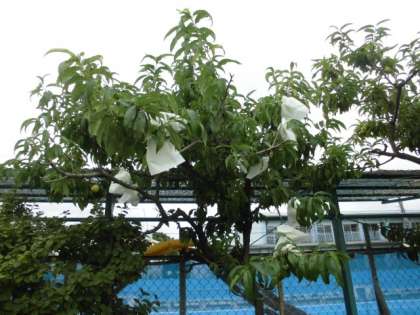 果実の熟成のための摘果と、少量ですが袋掛けを行いました。収穫に向けて順調に進んでいます。