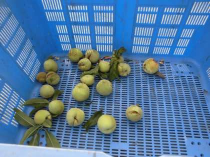 職員Aの感想「予想以上に表皮が割れている桃が多いです。」