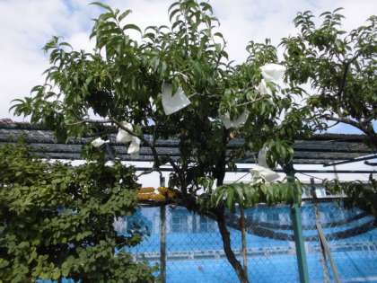 これから日差しが強くなってくると思われるので、早急に全ての桃に対して袋掛けを行います。