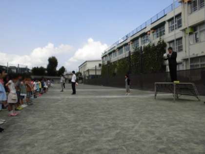 1年生、3年生、5年生の児童代表が1学期を振り返って言葉を述べました。