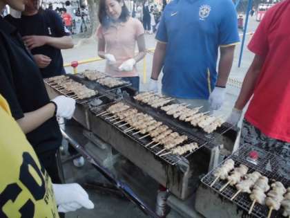本日19時から21時まで深沢公園にて、東深沢町会納涼踊りが開催されています。おやじの会と本校教職員が協力して焼き鳥を焼いています。