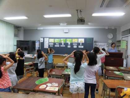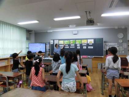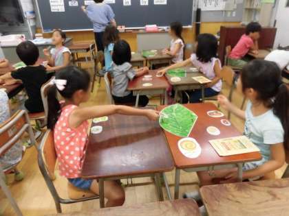 英語で歌を唄ったり、絵本を読んだみました。最後にはゲームもして楽しみました。