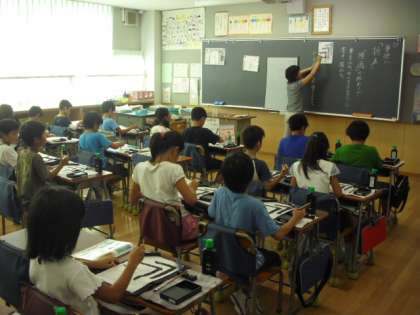 先生のお話をよく聞き、いざ半紙へ、筆を立ててとてもよい姿勢で学習していたので、写真を撮りました。良い姿勢の子どもたちを見て私の背筋もピンと伸びました。