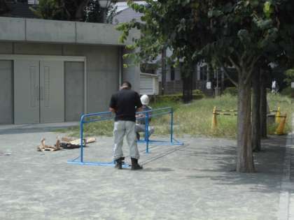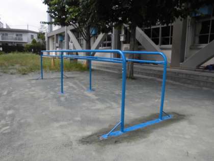 1学期末に一輪車練習スタンドが経年劣化で壊れてしまったため、新しい一輪車練習スタンドを設置しました。