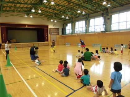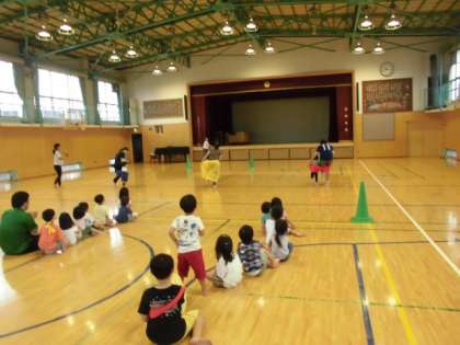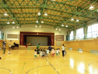 9月16日に、本校体育館を使って運動会を行う「茶々とどろき保育園」のお友達が、運動会の練習に来ました。