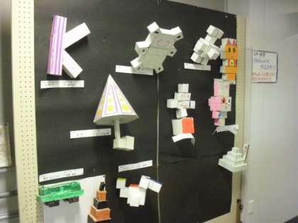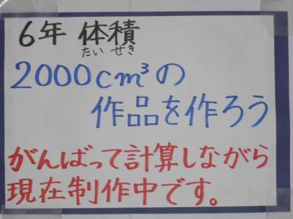 算数少人数教室の前の廊下の掲示物です。学習したことを実際に表現してみました。
