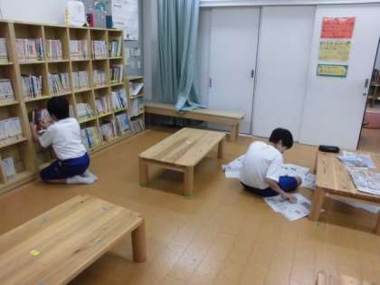 図書室前の掲示物を、【秋物】にリニューアルしました。