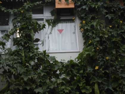 なんと、消防隊の突入口にヘチマがかからないよう、ネットが加工されていました。