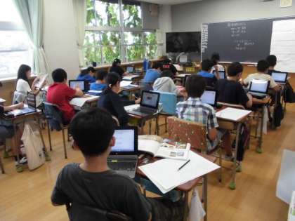 6年生は、タブレットPCを使って日光のまとめを行っていました。