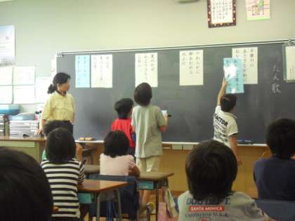 日本語で短歌の学習です。上の句と下の句の言葉をてがかりに一つの歌を完成させます。