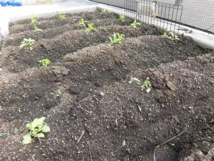 本日、畑の様子を見に行くと、ほとんどの芽が倒れていました。