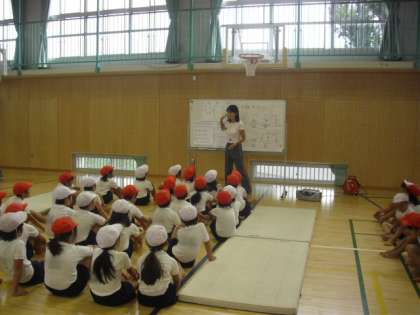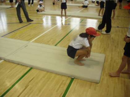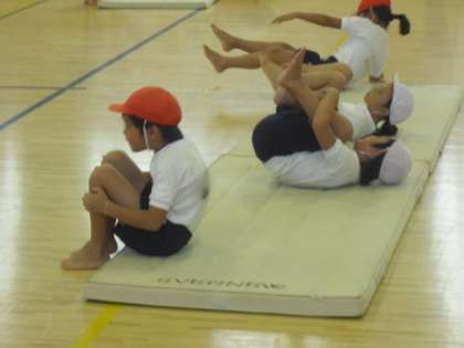 集合、整列、マットの運び方、学習中のルール等がしっかりと身についている、気持ちの良い授業でした。(寺崎)