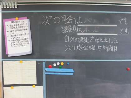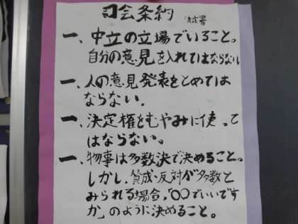 学級会における【司会チームの心得】が掲示されていました。