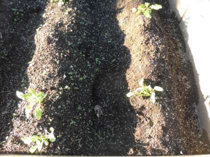 1つのうねに生えている雑草を除去するのに、2人で15分かかりました。