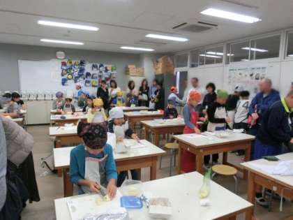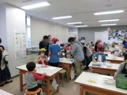 写真は、5年生の家庭科「リンゴの皮むき」です。