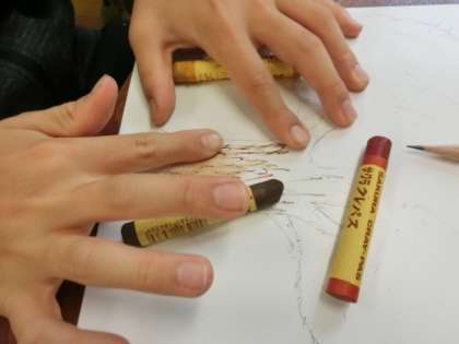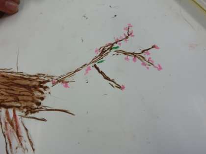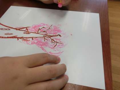 今日は6年2組が「桜」を専用の用紙に描きました。