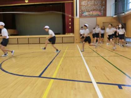 雨天のため、体育館で長なわとびの練習をしました。