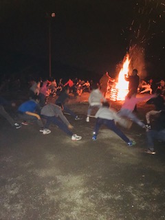 火柱の周りでソーラン節を踊っています。