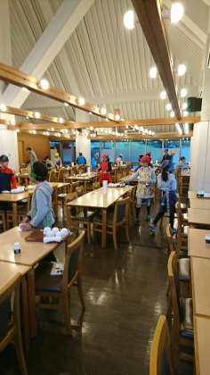 食事係が、補助員の方の丁寧な指導のうえで、朝食の準備をしています。