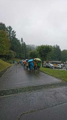 川場村は小雨ににりましたので、クラスでまとまって、宿舎近くの散策にでかけます。