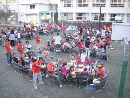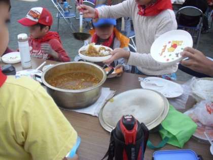 カレーの出来上がりです。高学年の友達が中心になって盛り付けをします。自分たちで作り、外で食べるカレーの味は格別です。いろいろな班のカレーを食べましたが、材料は一緒でもどれも違った味がします。「みんな違ってみんないい」です。おいしかったです。ごちそうさまでした。食事の後は、お楽しみの「肝試し」です。