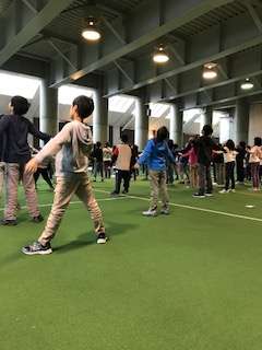 朝の体操に取り組んでいる様子です。