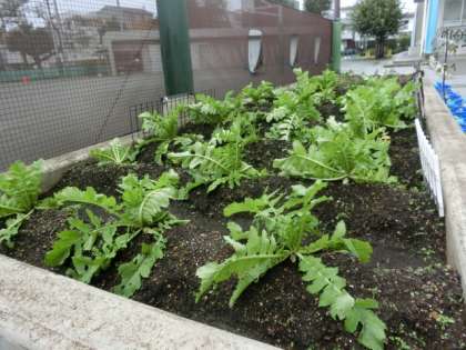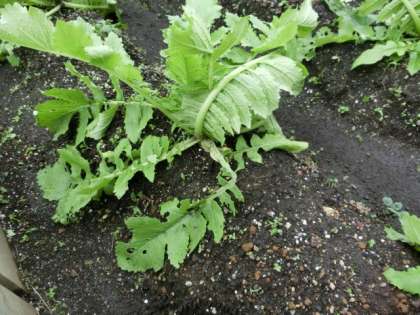 台風21号の強風により、葉が根元からめくれ上がっていました。