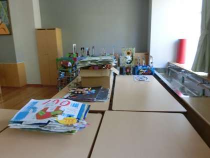 現在、ランチルームを作品置き場としています。